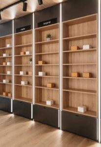 باختصار، الاستثمار في تركيب رفوف خشبية للمحلات في دبي يمنح المحل تنظيمًا عمليًا، تصميمًا جماليًا، وتجربة تسوق مريحة، مع ضمان استقرار الرفوف واستدامتها على المدى الطويل.
