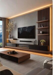 التكنولوجيا الحديثة تلعب دوراً أساسياً في تصميم TV Unit في العين ، حيث يمكن دمج أنظمة كابلات مخفية، منافذ كهرباء ذكية، وإمكانيات تثبيت شاشات متعددة الأحجام، ما يجعل الوحدة عملية ومتطورة في نفس الوقت.