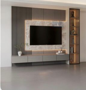 تصميم TV Unit – Media Wall في العين 0527470869 خصم 30% يُعد تصميم TV Unit في العين من أهم العناصر التي تضيف لمسة جمالية وعملية لغرفة المعيشة، حيث أصبح الـ TV Unit جزءاً أساسياً في تصميم الديكور العصري للفلل والشقق الحديثة. فالتصميم الجيد للوحدة لا يقتصر على كونها مكاناً لتثبيت التلفاز، بل يمتد ليشمل التخزين الذكي، عرض الأجهزة الإلكترونية، وتنظيم جميع ملحقات الترفيه بطريقة أنيقة وعصرية.